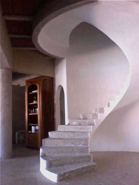 Escaleras circulares normalmente necesitan un soporte central, pero quería que el centro abra, así que diseñé este uno al voladizo de la pared, dejando un centro abierto de 3'.