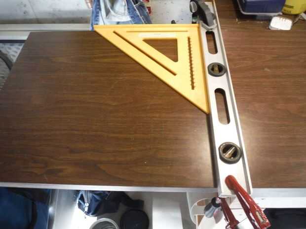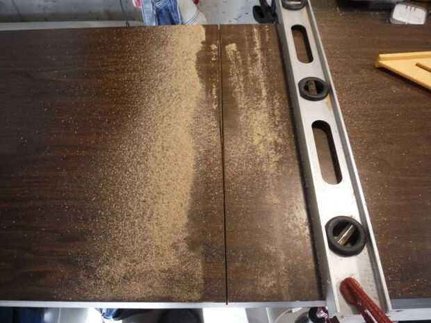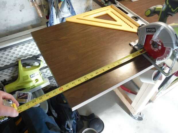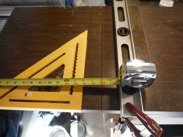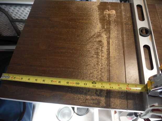 sí... Medido hacia fuera precisamente de 14 pulgadas y fijar mi plaza para compensar la sierra en el último corte y proceda a cortar la tapa de tabla con 2 cortes consecutivos que no empantanen la hoja de sierra.