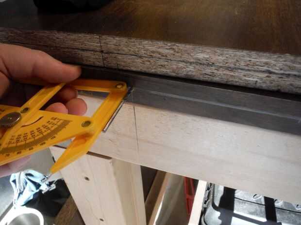 1. Utilizando el cuadrado de la velocidad trazar 2 líneas, 1/2 pulgada desde la parte superior del Banco, y estante terminado lados