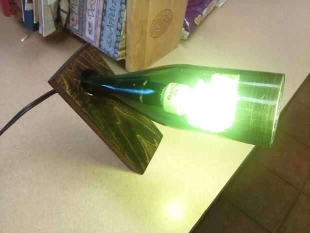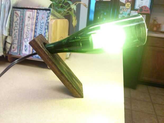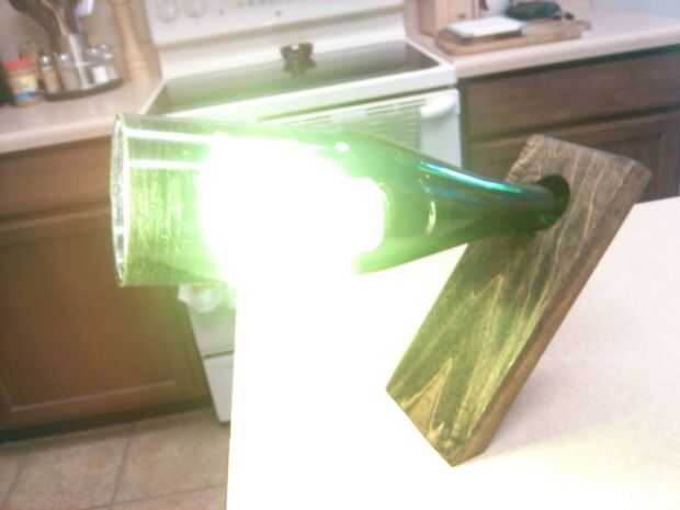 Así que ahí tienes todo... una de las lámparas más bonito que he hecho. Ahora los que hay que hacer es conseguir la duela, el cable de alimentación a través de su agujero, encontrar el punto dulce para el cuello en el agujero y equilibrar la botella. Quizás dar la tabla de un golpe de cadera poco para probar la integridad del equilibrio de la lámpara. Puede influir en la botella y el titular se balancea ligeramente (dependiendo de lo fuerte que "Elvis-ed" la mesa, Uh Huh! Muchas gracias), pero ella no debería caer por el centro de gravedad y algunas otras leyes de la física (y, probablemente, geometría) que daño mi cerebro y no incluso trato de fingir para entender (cosa que conozco es el centro de la botella debe venir cerca de ser sobre el ángulo inferior en orden para que funcione).