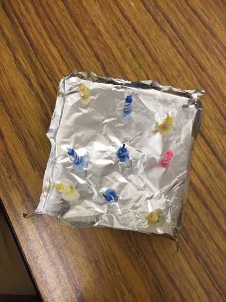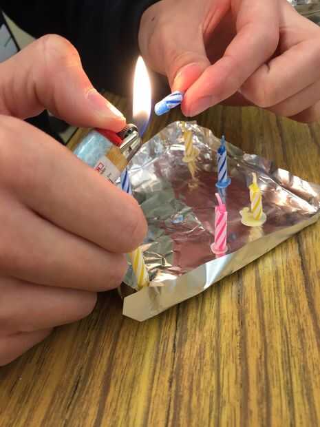 4. utilizar el encendedor de partidos para derretir los extremos de las velas, utilice la cera derretida para pegar las velas a la hoja