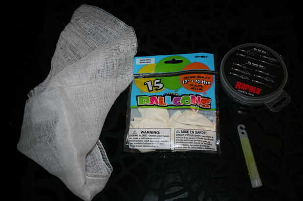No todas las tiendas fiesta llevan globos lo suficientemente grandes para esto, que tal vez necesite pedir alrededor. Las que usé fueron 3' de diámetro y un poco caro ($14 lleno), pero merece la pena. He intentado esto antes con tamaño estándar globos y no funcionaba bien. Tomó tres globos estándar para mantener a un espíritu alto, y aún así fue un poco incompleta. Los globos de monster cuestan un poco más, pero puede mantenerse hasta 2-4 fantasmas cada, dependiendo de cuántos palillos del resplandor utilizan.