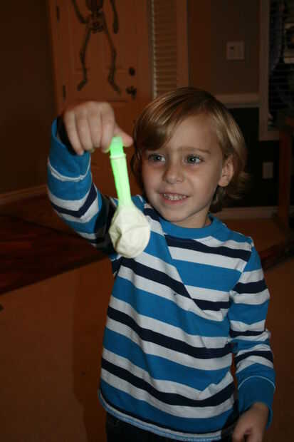 Una vez que tienes un palillo del resplandor bien sacudido, tiene su ayudante Coloque dentro el balón.