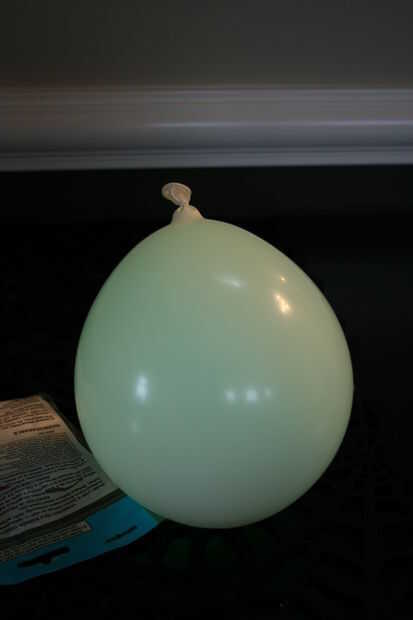 Ahora, inflar el balón y lo ate. Si no estás seguro de cuánto debe inflar el balón, lo toma en un baño oscuro y juzgar la cantidad de luz que está recibiendo, entonces dejar salir, o añadir más aire, según sea necesario.