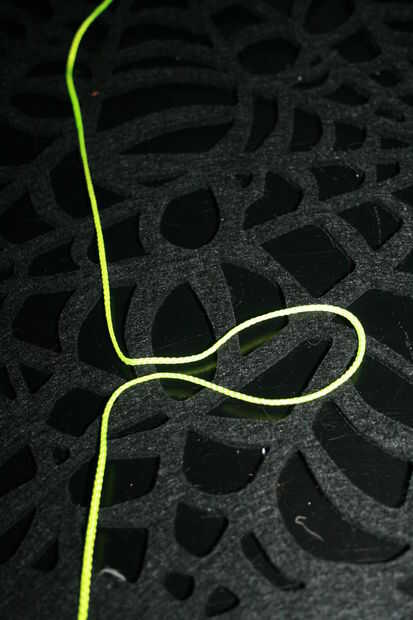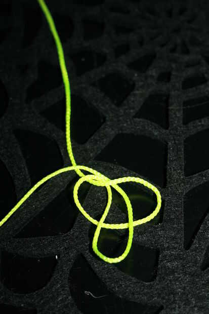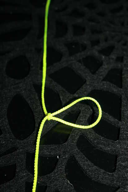 Una vez que ha flotado un poco, ate un lazo en la línea. Yo no soy versado en nudos, pero esperemos que las fotos muestran lo que estoy hablando. Ya que es muy difícil ver la línea de pesca, tomé fotos de un mismo proceso utilizando cadena regular.
