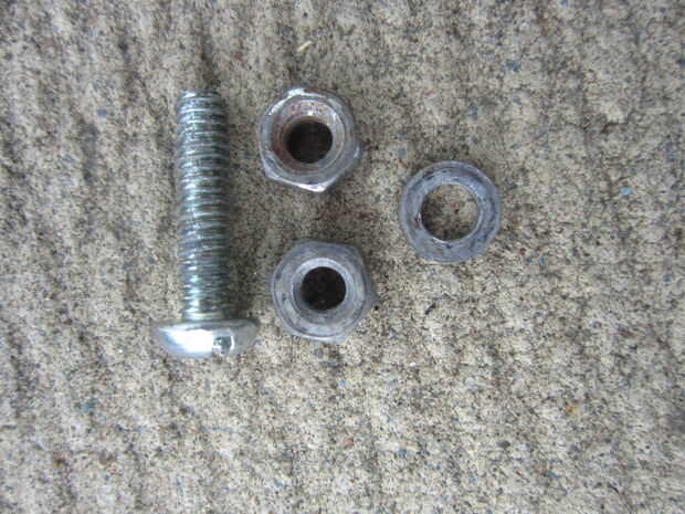Un perno de 1/4 de pulgada, tuercas correspondientes y una arandela