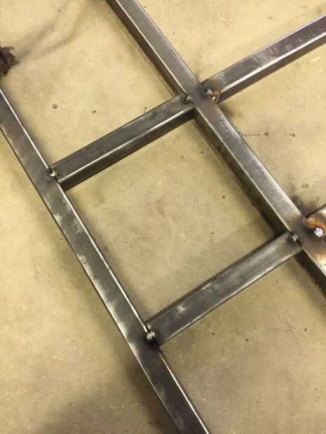 Nota: Intente soldar solamente en 3 lados o hacer la parte que entrará en contacto con la madera muy mínima. De lo contrario si hay una soldadura grande en el lado en contacto con la madera, la madera no hace contacto al ras con el marco completo de acero.