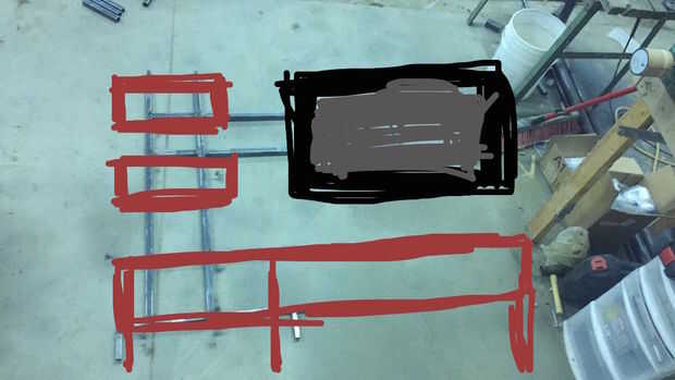 Para las barras transversales y los dos que sobresalen usé frenillos. 75" cuadrados tubos para el acero sería sensible detrás de la madera (desde 1" la madera es en realidad sólo. 75").