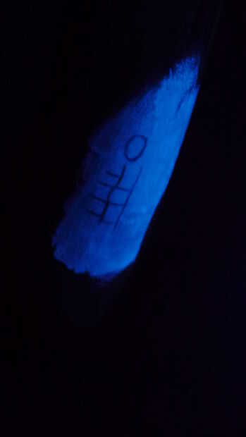 Siempre es una buena idea para probar cualquier pinturas de cuerpo en una zona pequeña para comprobar la reacción de la piel y también para ver cuál es el mejor orden para aplicar las pinturas. En este caso, la pintura de brillo era prácticamente transparente después de la aplicación, y la pintura negra era fácil de aplicar sobre la parte superior, el resplandor que enmascara muy bien.