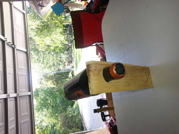 Comencé por corte mi madera en tiras de tres pulgadas desde mi pedazo de madera era largo y tengo dos de estas tiras de ella. Había medido hacia fuera de tres pulgadas con un cuadrado de la velocidad y hace una marca recta y una sierra ciculalr para cortar recto. La longitud de la botella de vino titular es cerca de 9 y un medio pulgadas. De mi tira de tres pulgadas miden 9,5 pulgadas y que ha se hice cortar a 45 grados. Para ello puede utiliza la herramienta de corte de ángulo en la sierra cicular. He utilizado una sierra de mano. tomando mi velocidad spuare y una regla en el 45 tuvo una regla y dibujó una línea sobre la madera en el ángulo de 45. Hacer esto otra vez por lo que se puede dibujar una línea entre para saber donde cortar para mantener el corte en el ángulo correcto. Algunos yo no corte perfecto pero todavía tenía la botella. Al hacer este corte puede utilizar el otro lado para hacer otro. medida por 9 y medio pulgadas de hacer un corte recto. Luego cortar el centro del círculo