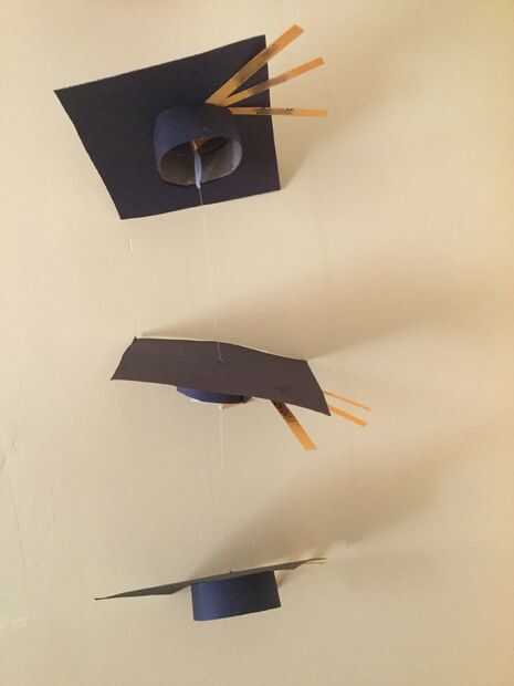 esta decoración fácil, adorable es perfecto para cualquier fiesta de graduación! Cuelga perfectamente y aturde a todos debajo de él. Me quito el sombrero a este lindo DIY!