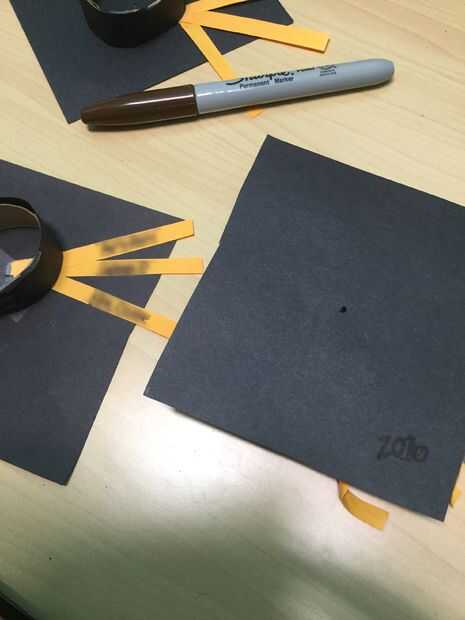 En las tres tiras de papel, escriba los egresados nombre (en el papel de primera), nombre (en el papel del medio) y apellido (en el papel más bajo). Escriba el año de graduación sobre el papel en la parte superior.