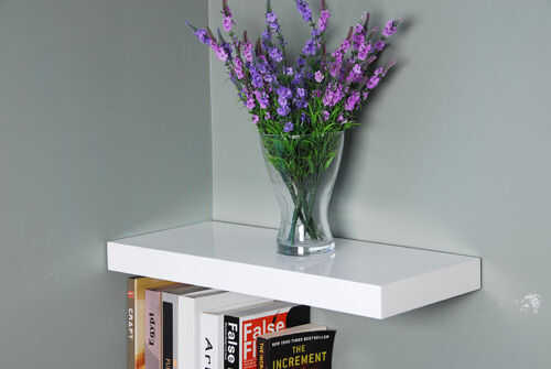 estos estantes son diseñados para montarse en la esquina de una habitación y colgar en las paredes adyacentes dos.  Los estantes son trabajos de tipo medio, como son apoyados por cantidades mínimas de hardware oculto para dar la apariencia de ser rea