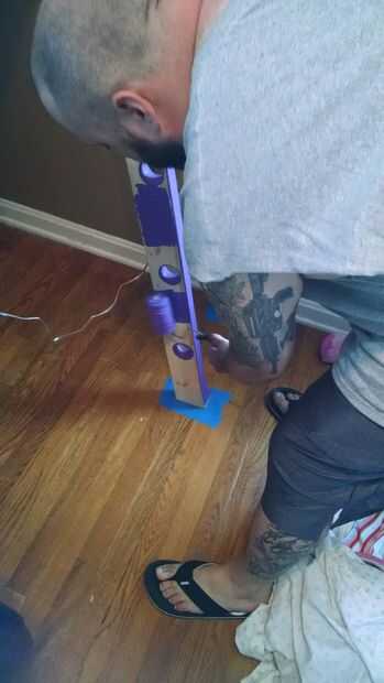 Grabado de la parte no quería púrpura así como quita la mayoría del PVC para no recibir pintura no deseada en ellos entonces comenzó a pintar