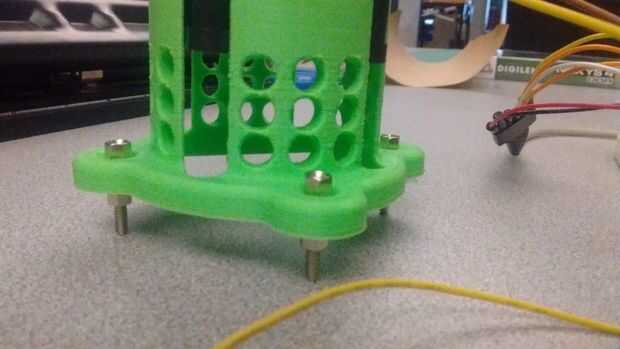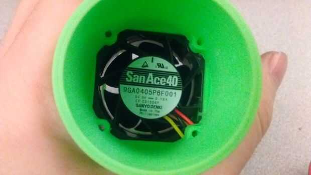 Para sujetar el ventilador y el tubo en su lugar, terminé impresión 3D (bueno, gentilmente aceptó una oferta de compañeros de trabajo para diseñar e imprimir) un soporte que proporciona suficiente flujo de aire para el ventilador de 5V flotar la pelotita de ping pong de toda la longitud del tubo. La parte que terminé usando pueden descargar desde este paso (o eventualmente de Repables.com aquí - que sigo recibiendo un error al intentar crear una cuenta).