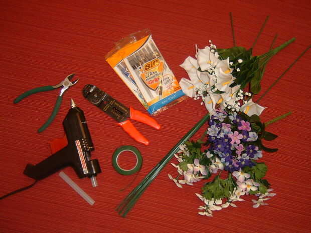 1. flores (con tallo) - puede encontrarse en tiendas de artesanía y arte en Wal-Mart ($.50 y suben)