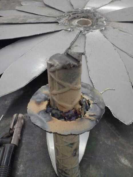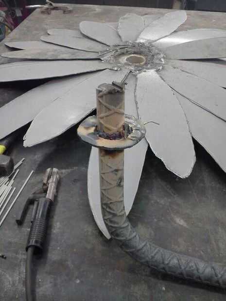 Entonces hice a una arandela las soldaduras interiores para la soldadura exterior tallo y voluntad a la flor.