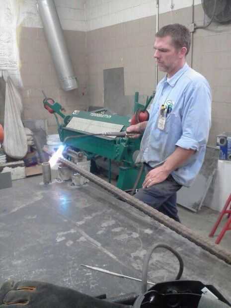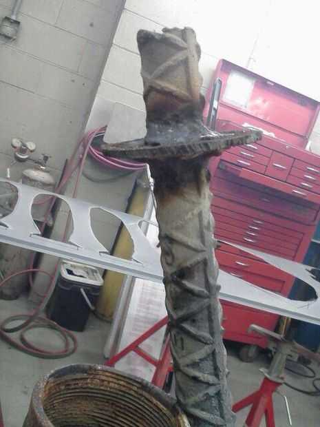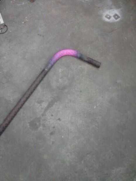 El vástago se hace con varilla de 1 y 1/2". La plantilla sobre la mesa es porque es algunas cosas carnosas. Una vez que lo calienta sobre la temperatura del infierno, ponerlo en la plantilla y tire a 90 ^ o.