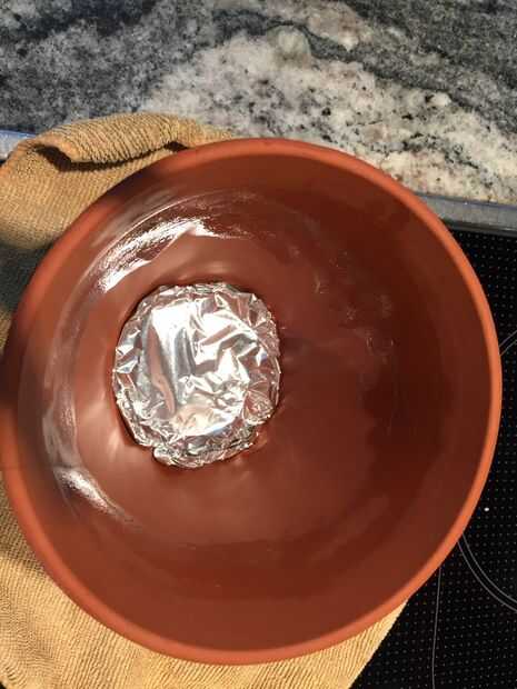La base de la jarra tiene un agujero! Coloque un pedacito pequeño de papel de aluminio en él. Capa este papel con el aceite demasiado.