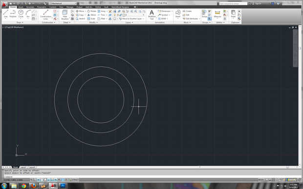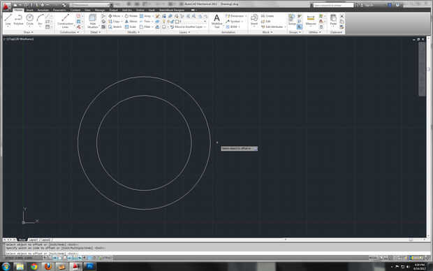 Ahora repita el comando offset utilizando la misma línea que antes, pero esta vez cambiar la distancia de 2 pulgadas a 1.5 y el desplazamiento hacia el interior del círculo en lugar del exterior. [3]