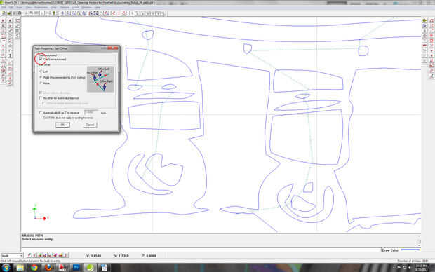 Las rutas de exportación como un archivo ORD y estás listo para rodar! También incluí una imagen de pathing automático para la comparación. Este archivo no era demasiado malo y probablemente funcionaría hacia fuera bien. Había unas condiciones de retroceso, por lo que es inferior al óptimo, pero afortunadamente no todo el lugar. Otra preocupación con pathing automático es que la corte podría tener lugar en el lado equivocado de la línea. Que alguna vez el método que elija, siempre asuma que algo salió mal y verifique su trabajo.
