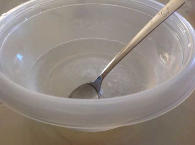 En uno de los tazones de fuente, poner 3/4 taza de agua y el bórax.