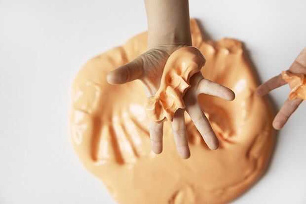 Agregue el bórax una vez más para asegurarse de que se haya disuelto. Poco a poco agregue la mezcla de pegamento a la mezcla de agua removiendo. Jugar con él en la mezcla de agua. Lo saca del agua y empezar a jugar con él.