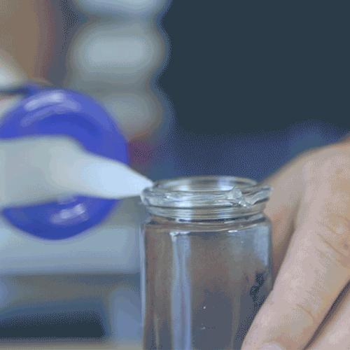Para protegerse contra eventuales derrames una gota de silicón calafateo se agrega a la rosca del envase y la tapa atornillada firmemente, creando un sello impermeable. El contenedor quedó vertical para curar durante unas horas.