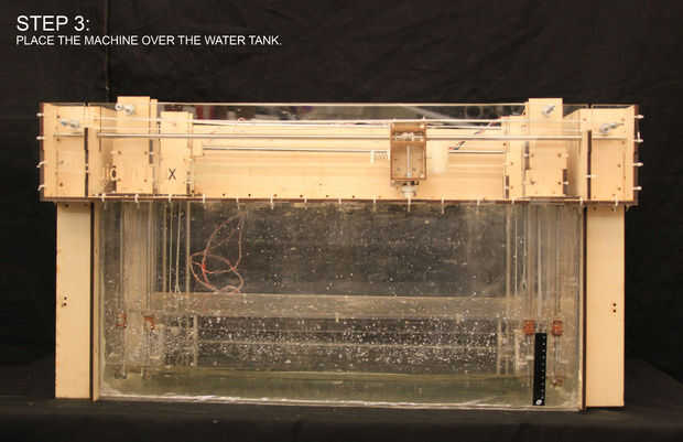 3. Coloque la máquina sobre el tanque de agua, tal que las muescas haga clic en sí.