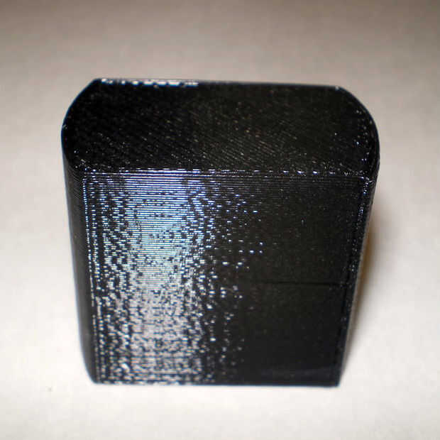Una mirada cercana a la pieza muestra las líneas de plástico que señala a la impresora 3D para crearlo. Puede ser enarenadas apagado con papel de lija muy fino o alisado usando acetona.