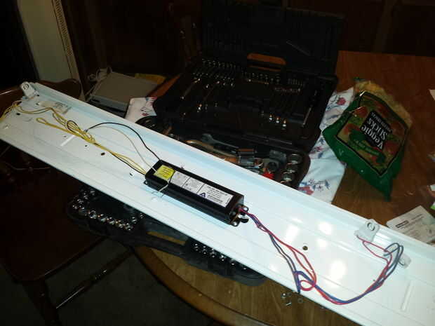 Este es otro punto donde digo si usted no está cómodo con la electricidad real (AC en la pared) no lo hace. También, si usted no está mecánicamente inclinado lo suficiente quitar la resistencia de balasto y otros cables de la luminaria en su propio, te probablemente no debería estar haciendo este. Antes de que se queja de que estoy dejando cosas fuera, he mirado en los tres partidos en mi casa y son todos muy diferentes. Estoy seguro que las instrucciones para desmontar mi luminaria llevaría sólo pasar parecido a lo que necesita hecha para limpiar el producto de su antiguo valor. Terminé siendo necesario sólo un destornillador y unos alicates de junta deslizante.