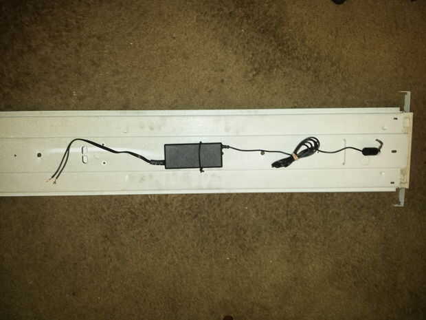 esto es una vieja luz de tubo fluorescente defectuoso que convierte en utilizar tecnología LED.La luz del tubo viejo había soplado los capacitores e inductores y había sido reparada antes de finalmente abandonar el fantasma. La salida de luz era pobr