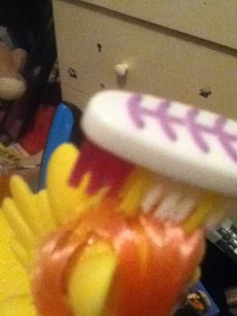 Peine su pelo de pony con el cepillo de dientes del champú.