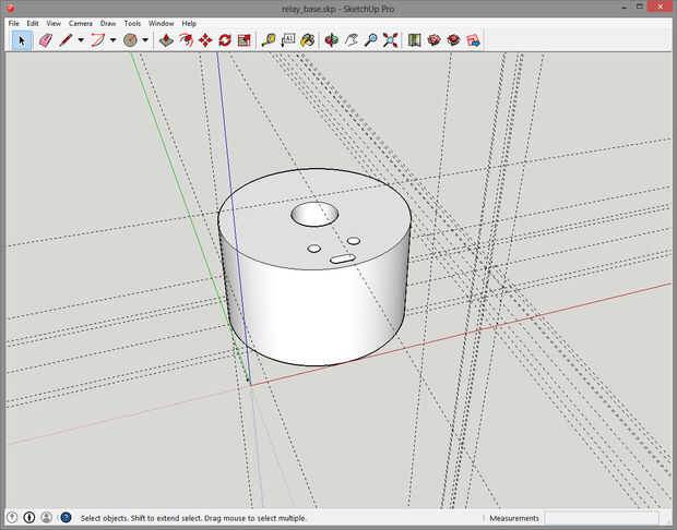 Después de mirar las imágenes y trabajar hacia fuera el tamaño de las bases de relé que diseñé en 2014 de SketchUp de Google, con los agujeros para los postes terminales y todo el gran centro que es de 12mm para que el tubo de 12mm caben en él.