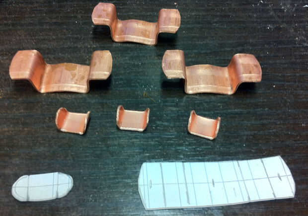 las piezas de cobre recubierto por una cartilla y luego latón pintar igual que las bases.