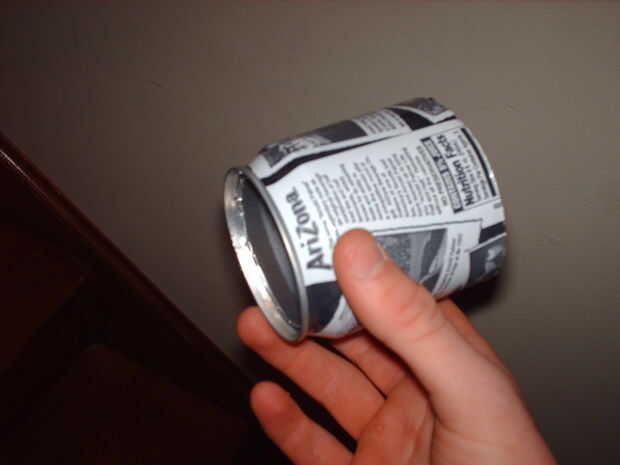hay una taza de lata de soda. Perdón por las fotos mal pero, el trabajo muy bien. Si mi inglés es malo por favor corregir mi en los coments.Paso 1: Materiales y herramientas Son muy poco:Herramientas:1) archivo grande2) archivo pequeño3) papel de lij
