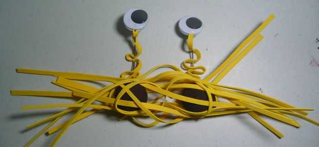 Esta es una guía simple de cómo hacer tus propias decoraciones de mesa de Flying Spaghetti Monster para su fiesta de pasta viernes :)Paso 1: materialesSe necesita:2 ojos saltones adhesivo del uno mismo (o no-adhesiva, pegamento sólo en)3 limpiadores