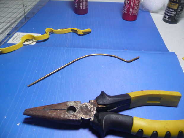 Plegado y corte algunos alambre duro, alambre de un viejo hangar funciona bien. Dejar una tapa vertical para fijar los ojos y algo de espacio extra en la parte inferior para presionar en sus albóndigas.