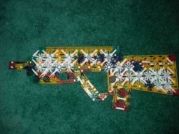 esto fue calificado como el #1 k'nex pistola en 4.31!Aquí tienes...Paso 1: El cuerpo principal Paso 2: El mango Paso 3: El barril Paso 4: Falso Mag Paso 5: La acción Paso 6: montaje Paso 7: las bandas Para disparar, primero cargar algunas balas en la