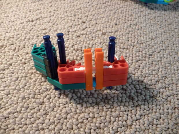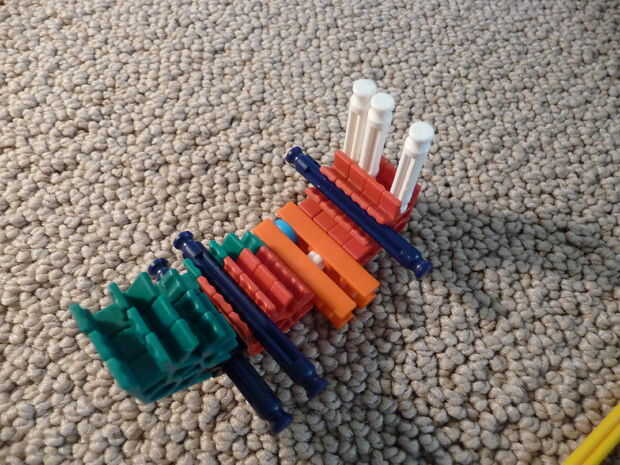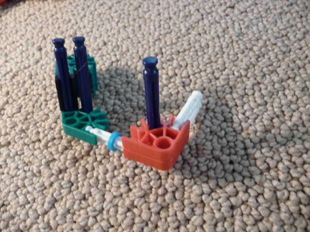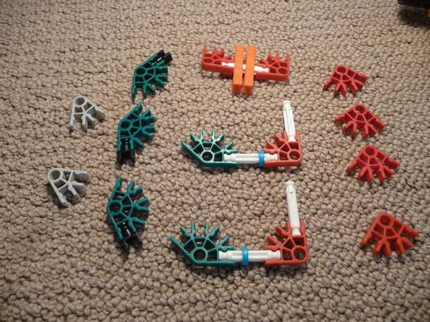 1. reunir estas piezas (3 varillas azules también se necesitarán) y construir estos subconjuntos