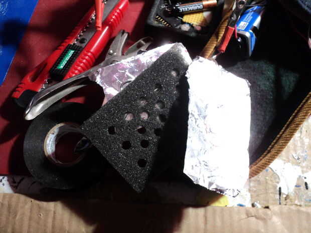 Emparedado de la espuma entre las capas de dos papel switch. Las almohadillas de dos papel deberían estar colocado dentro de uno hacia el otro.