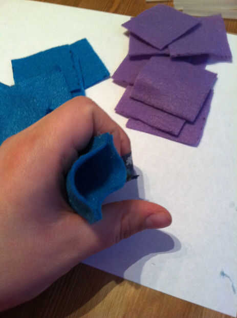 Después de que ha pegado todos los bolsos de haba y hayan enfriado, inspeccione los bordes para desbordamiento de pegamento caliente y ajuste según sea necesario.