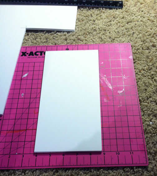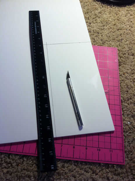 Luego use el cuchillo X-acto y una regla de filo metal (si tiene uno) encima de una estera de corte para cortar líneas rectas las líneas marcadas en el cartón pluma.
