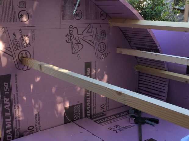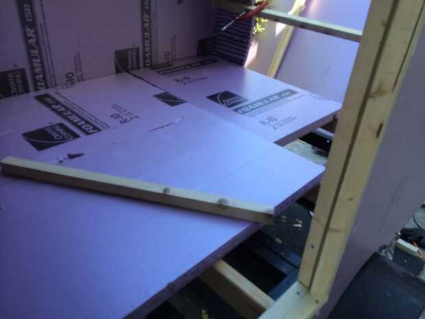 Terminada estructura de estante terminé de poner los pedazos de la cáscara. Va a utilizar la madera adicional flotante para el estante. Considera glassing en algunos restos 1 pulgada XPS espuma pero funcionó hacia fuera estropear y curvas de ensayo y error.