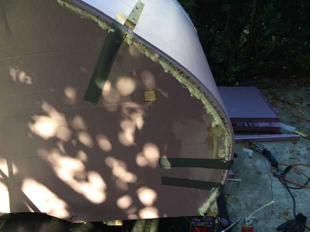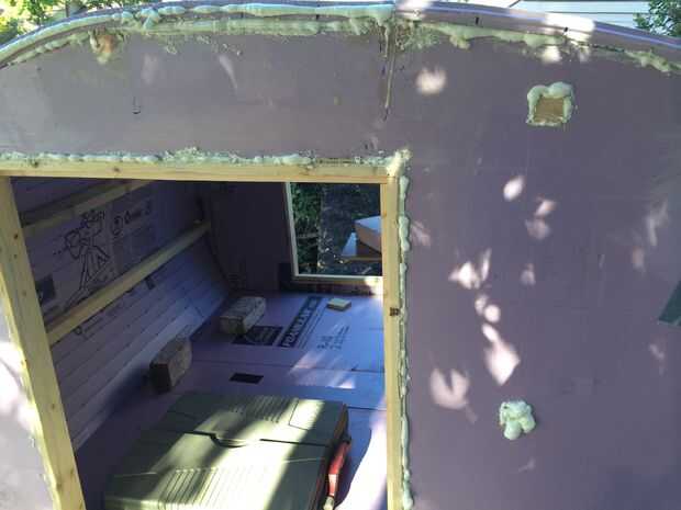 Después de unos minutos de 30-45 cogí la maquinilla de afeitar poco para tallar el exceso y comenzar a formar la cáscara. El pedazo de techo de espuma radiales las paredes por una pulgada o así sucesivamente ambos lados así que tuve que recortar el extra a los lados un perfil liso