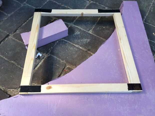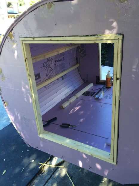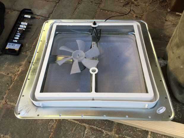 También tuvo que hacer un marco para la ventilación del techo (con ventilador de 12v) 16,5" a través con apertura de 14". Usada 1 x 2 puesto del lado del marco, elevación de la ventilación hasta 5/8". Corte un orificio de 14,5" para permitir el espacio de ventilación en. Usando cinta de butilo entre marco y ventilación. Pegar el marco a la concha XPS antes fiberglassing.