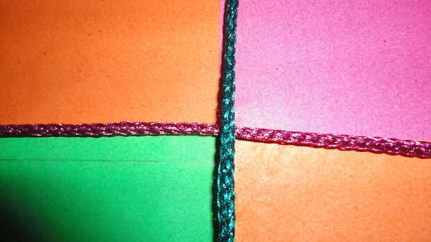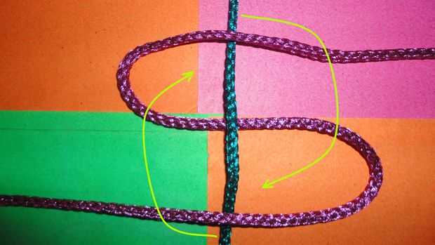 2. el cable horizontal (azul) del arco sobre la cuerda vertical (rosa) en dirección opuesta (ver imágenes arriba)