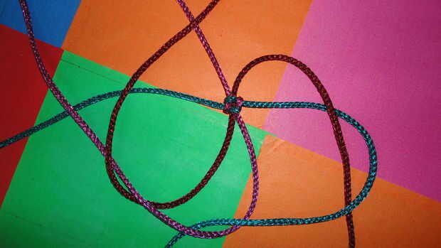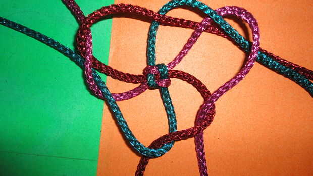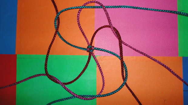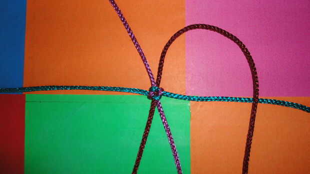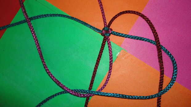 Después de hacer el nudo cruzado... vamos a hacer el nudo de corona...
