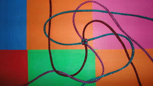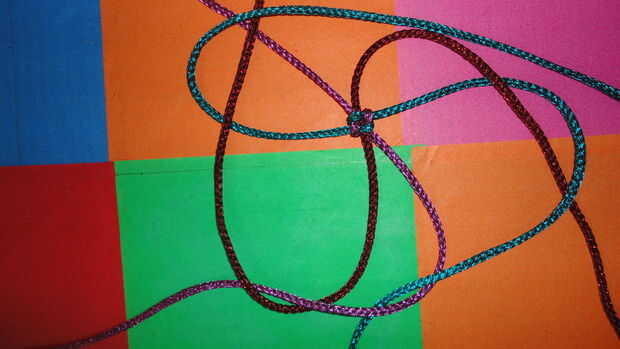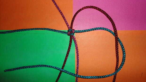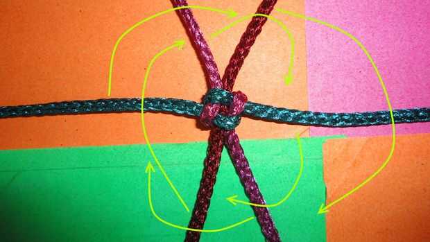 1. cuerda superior derecha (rojo) y cruzar el siguiente cable (azul) moviéndose hacia la derecha (ver imagen).