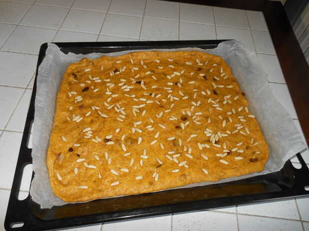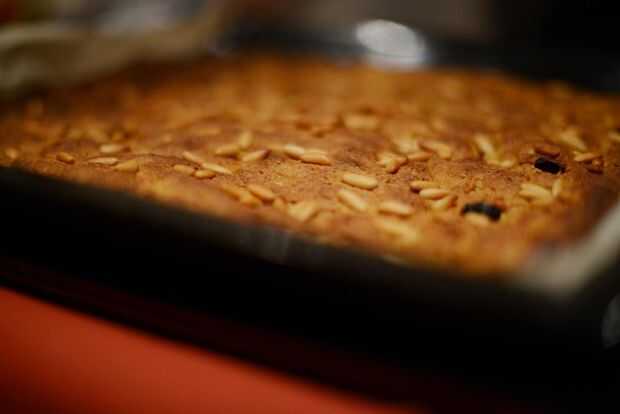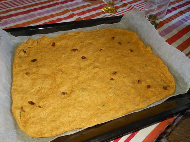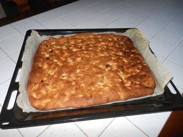 Focaccia dulce con pasas, azafrán y semillas de pino. (4 / 4 paso)